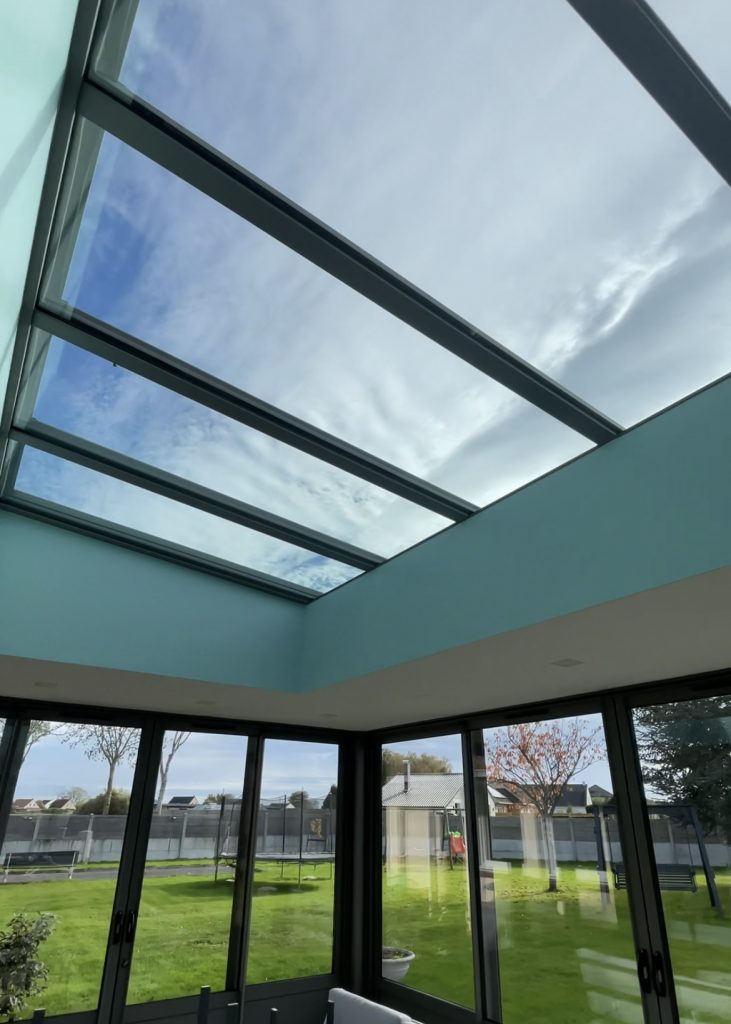 Vérandas : Nettoyage complet des vitrages de toiture, des parois verticales et des profilés (alu, PVC).
